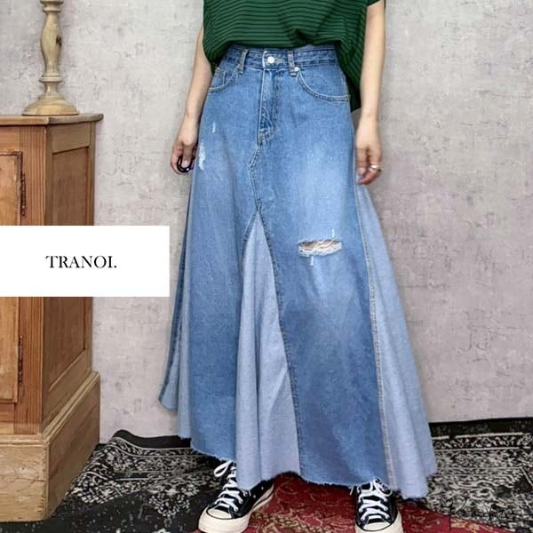 【TRANOI.】 トラノイ クラッシュフレアデニムスカート 214R503