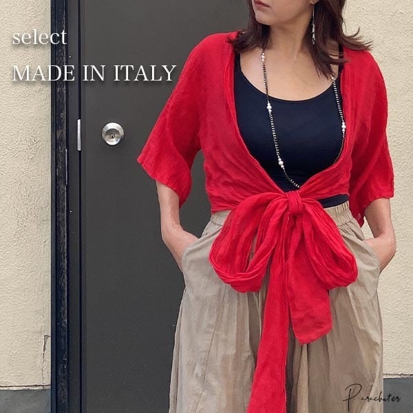 MADE IN ITALYのリネン100%カーディガンです。発色の良い赤のカーディガン。フリーサイズです。
