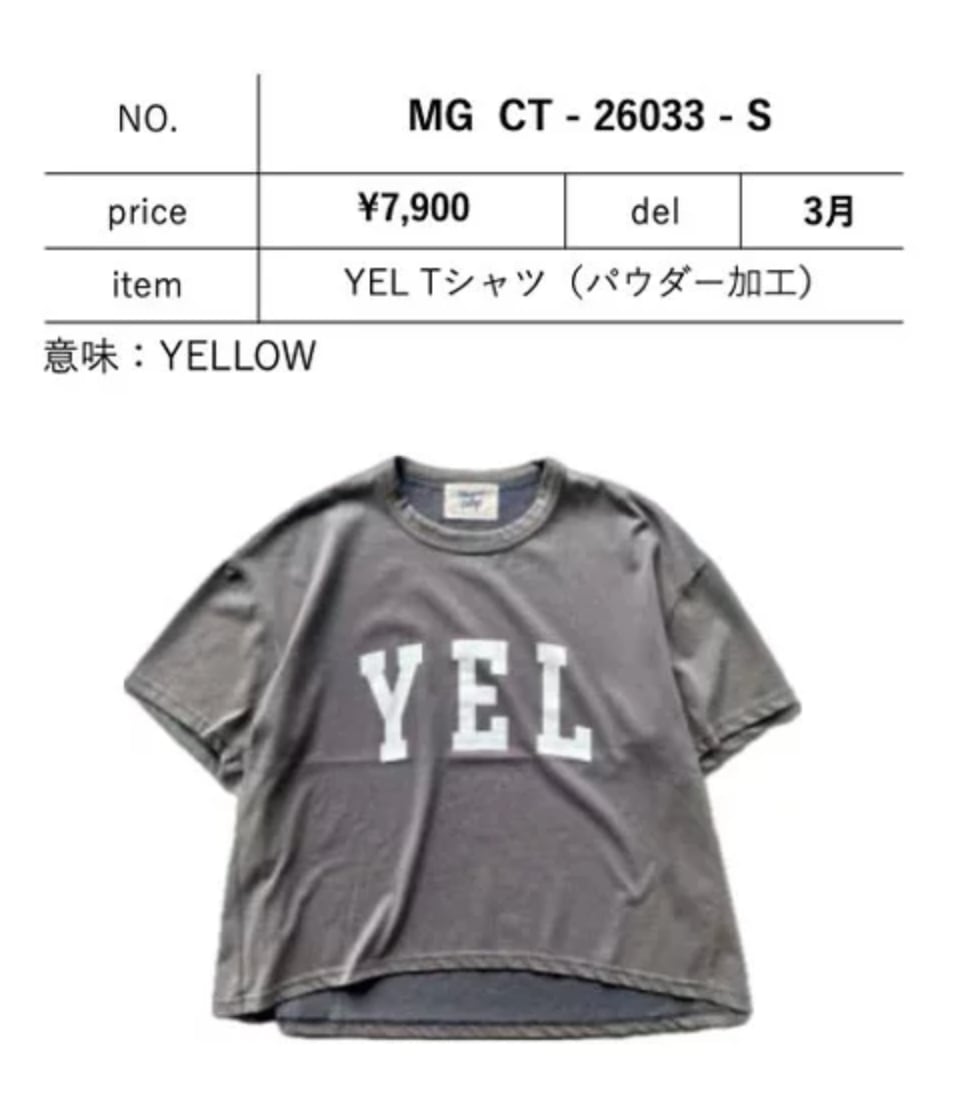 2026年3月発売予定の【MARGAUX VINTAGE】マルゴーヴィンテージ YEL Tシャツです