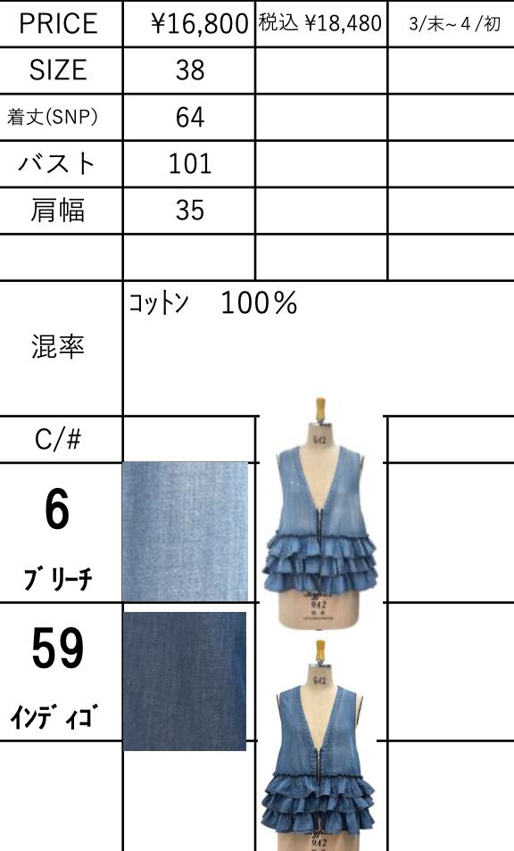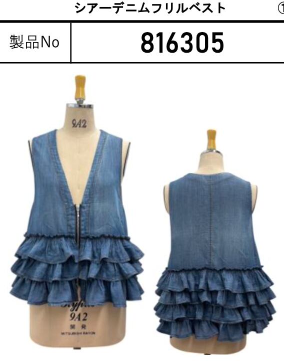予約 アヤン 816305 シアーデニムフリルベスト