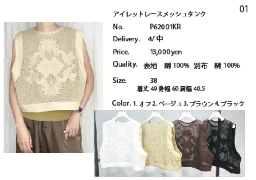 1/13LIVE ご予約商品 【PRIORITY】プライオリティ アイレットレースメッシュタンクP62001KR
