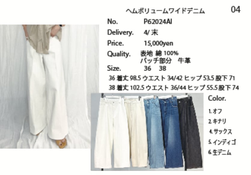 【PRIORITY】プライオリティ ヘムボリュームワイドデニム P62024AI