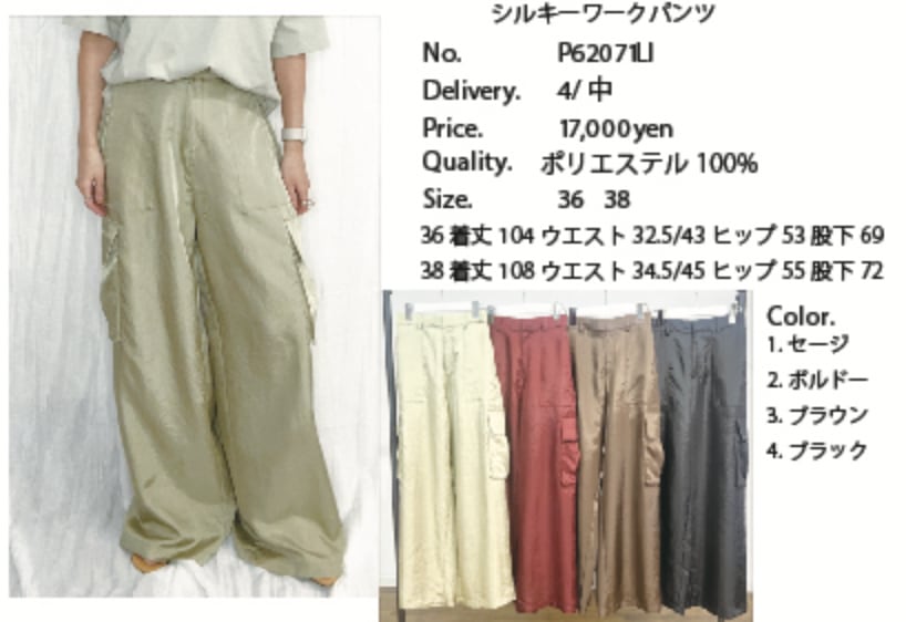 1/13LIVE ご予約商品 【PRIORITY】プライオリティ シルキーワークパンツP62071LI