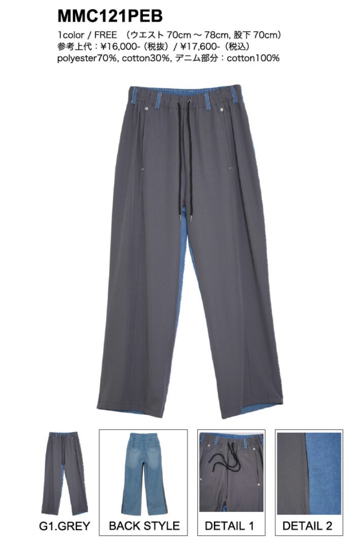 polyester70%, cotton30%、デニム部分:coton100%