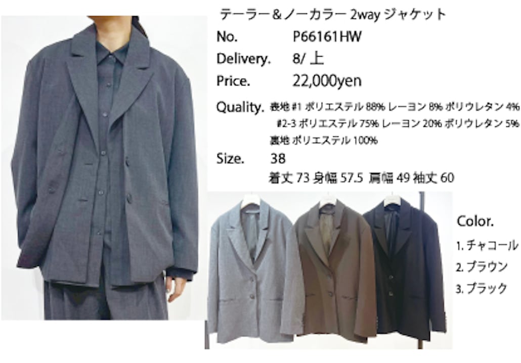 4/7 LIVE ご予約商品 【PRIORITY】プライオリティ テーラー&ノーカラー2wayジャケット P66161 HW