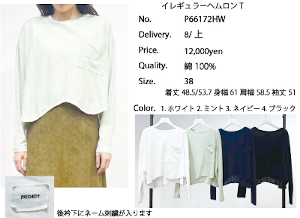 4/7 LIVE ご予約商品 【PRIORITY】プライオリティ イレギュラーヘムロンT P66172HW