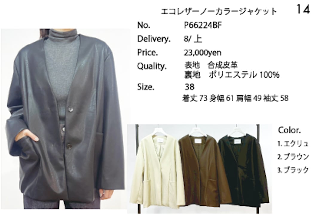 4/7 LIVE ご予約商品 【PRIORITY】プライオリティ エコレザーノーカラージャケットP66224BF