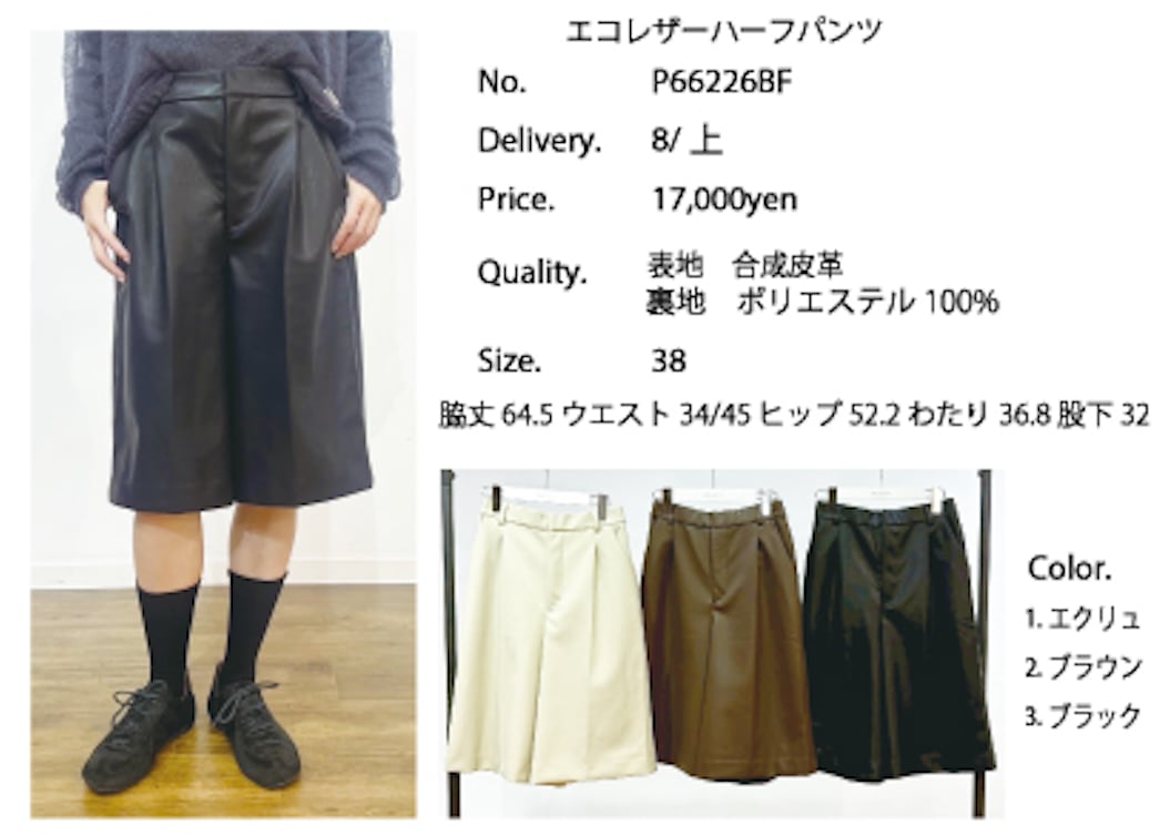 4/7 LIVE ご予約商品 【PRIORITY】プライオリティ エコレザーハーフパンツ P66226BF