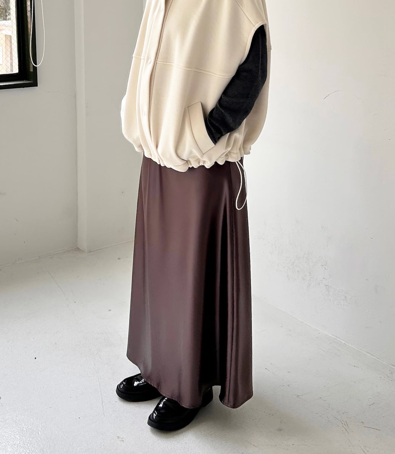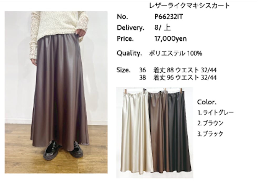 4/7 LIVE ご予約商品 【PRIORITY】プライオリティ レザーライクマキシスカート P66232IT