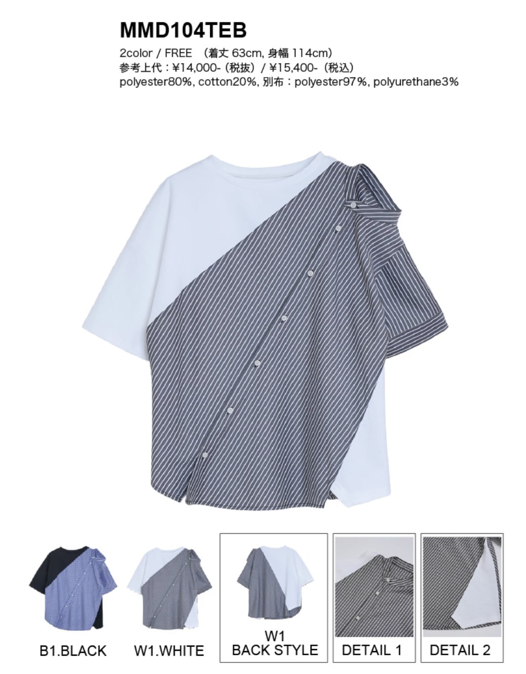 2color / FREE(着丈63cm, 身幅114cm)